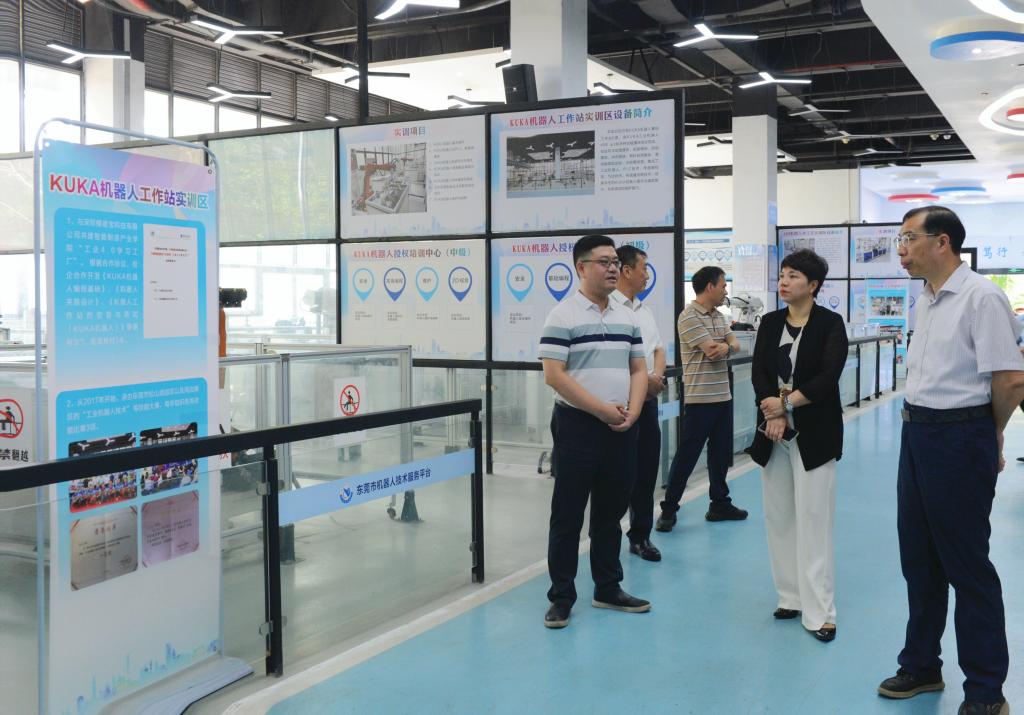 签约仪式结束后,吉安职业技术学院党委书记曾志珍一行在我校党委书记司琪陪同下,参观了我校机器人技术服务平台等地。