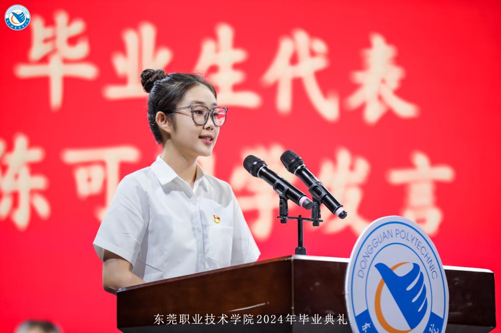 毕业典礼在庄严的国歌声中拉开了序幕。数字媒体学院陈可代表毕业生发言,她向母校和所有老师的辛勤培育表达了深深的感谢,表示以不懈的努力和汗水,书写自己独特的人生篇章,以实际行动展现作为东职人的拼搏精神和不懈追求。随后,毕业生代表为辛勤耕耘的毕业班优秀教师代表和默默付出的后勤工作人员献花,感谢他们的谆谆教导和辛勤付出。