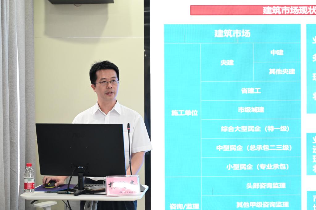 为进一步推进高水平专业群建设,7月4日上午,我校建筑学院在大岭山校区开展2024年“说专业群”活动。我校党委副书记、校长贺定修出席会议。本次活动邀请了广东科贸职业学院园林学院院长杨运英、中建三局深圳公司湾区公司嘉诚花园项目部总工程师蔺宝伟、东莞市建筑科学研究院院长张彤炜、番禺职业技术学院建筑工程学院专业带头人李小勇等专家作现场指导。活动由建筑学院党总支书记、院长颜新宁主持。