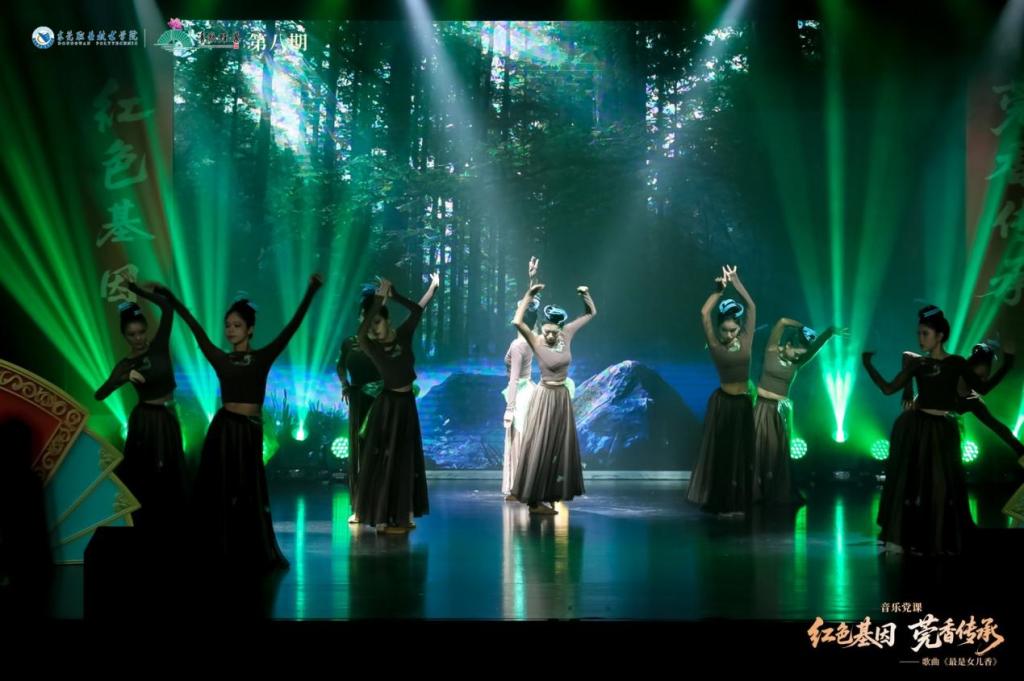 第二篇章以舞蹈《莞香树》展开,舞者以柔美身姿演绎莞香从萌芽到成材的生命历程,象征红色精神的生生不息。后以学生现场展示莞香制作流程。最后通过说唱《莞邑东职,强国有我》将现场氛围推向高潮,学生以动感节奏唱响青春誓言,凝练学校工作亮点和特色,展现校园活力与城市发展。