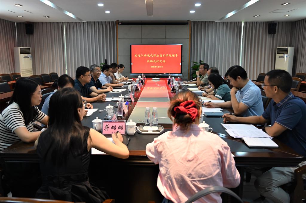 9月11日上午,江西现代职业技术学院党委委员、副院长朱建华带队来我校交流。我校党委副书记、校长贺定修及相关部门负责人参与接待。