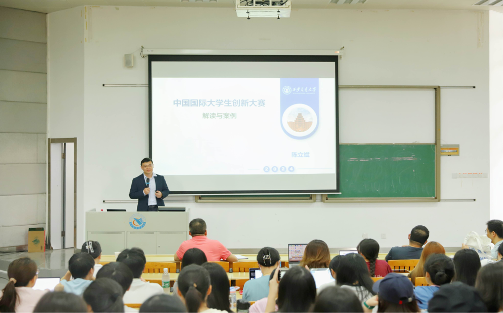 集训开始前,李国臣介绍了本期集训的目的和教学内容,并要求创新创业项目团队师生将集训中学到的内容和创业实践项目相结合,在项目的实践中不断提高自身的创新思维和创业技能。随后,本次培训的主讲嘉宾陈立斌博士和王乾老师分别以《中国国际大学生创新大赛进行了赛制解读和案例分析》、《大学生创新创业项目来源及PPT制作要领》为主题,进行了专题授课。