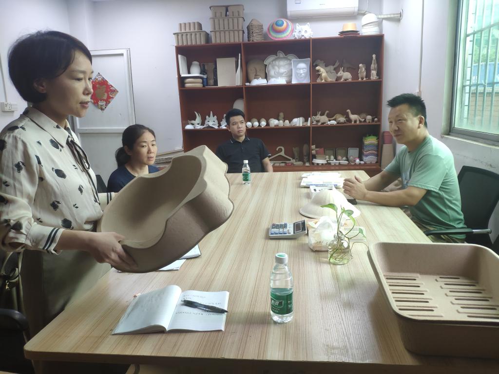 团队还走访了东莞市泽林包装制品有限公司,分析了公司现有纸托生产技术,并讨论了行业标准缺乏问题。双方将合作起草企业标准,并开发质量更优的纸托产品,助力企业冲击高端市场。