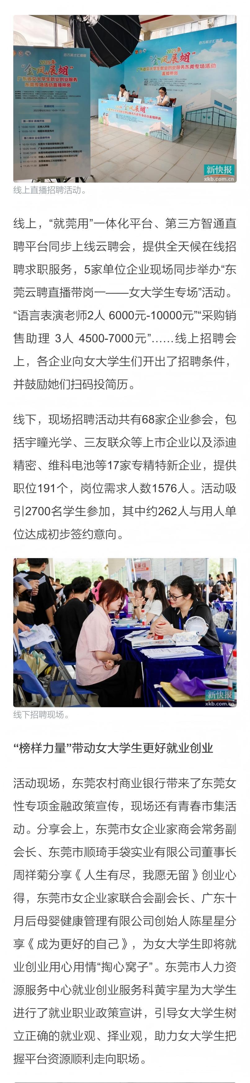 【新快报】 线上线下2000+优质岗位!“金凤展翅”多维赋能东莞女大学生就业创业