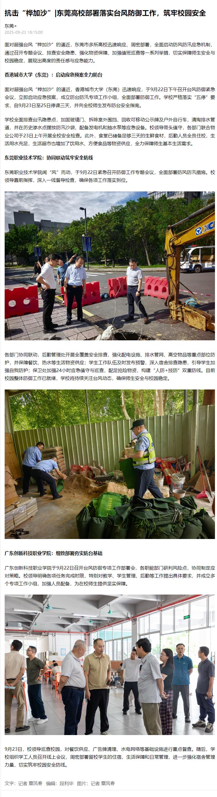 【东莞+】抗击“桦加沙”|东莞高校部署落实台风防御工作,筑牢校园安全